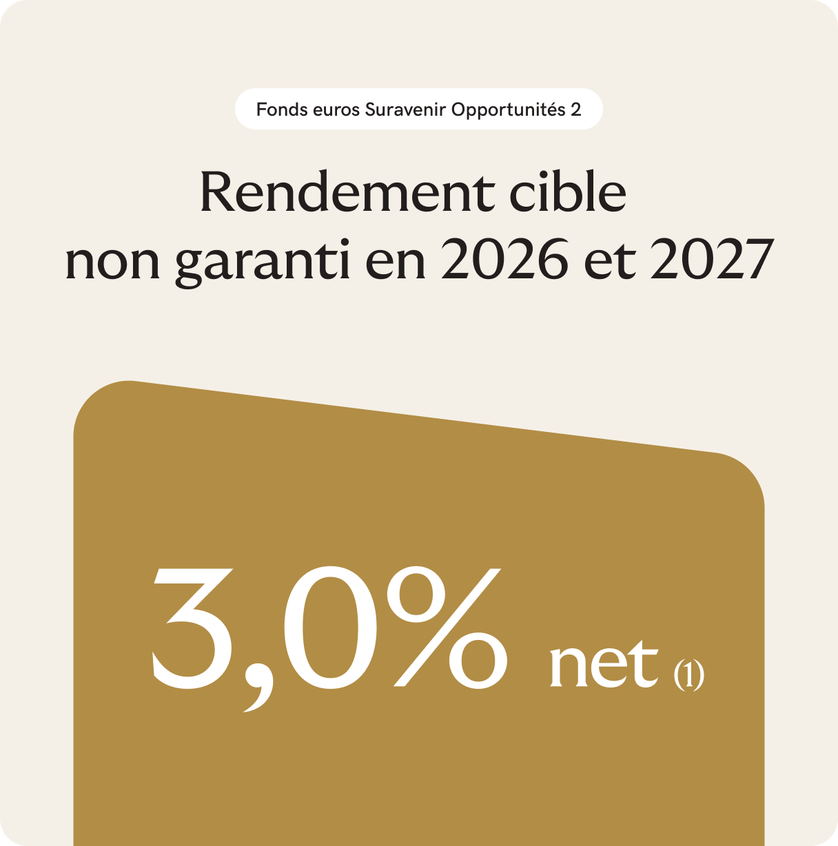 Objectif de rendement non garanti jusqu’à 4,50% net en 2026 et 2027 sur le fonds euros Suravenir Opportunités 2 sous conditions.