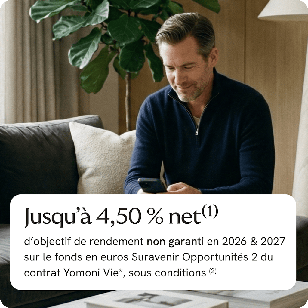 (1) Objectif de rendement non garanti du fonds en euros Suravenir Opportunités 2 pour les années 2026 et 2027, net de frais annuels de gestion, hors prélèvements fiscaux et sociaux et hors frais éventuels liés aux garanties décès.