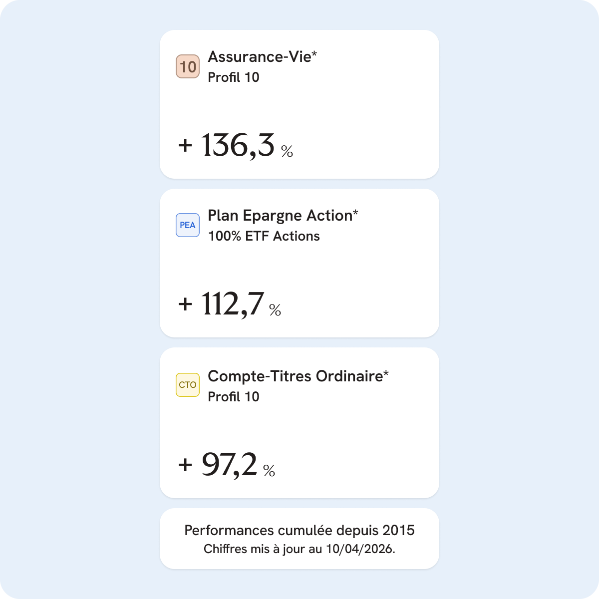 *Voir détail des performances sur yomoni.fr/performances. N’oubliez pas que dans tous les cas, la performance de ces profils n’est pas garantie et qu'il existe un risque de perte en capital.